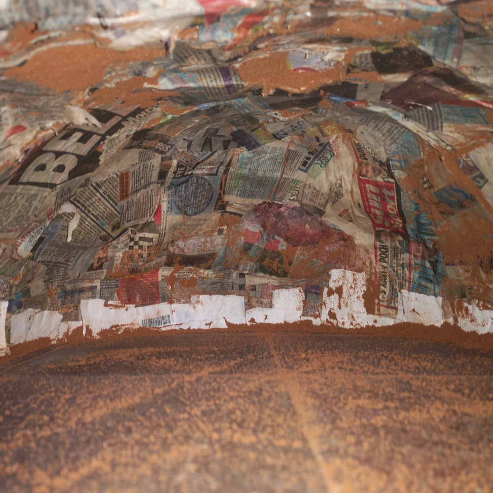 So decided to add another layer on top of this-about 10mm thick-and this time used hay fibres to hold it together a little better. Sounds odd but I put hay into a food processor to make into little fibres, it worked okay and I was able to incorporate them into the mix but quickly discovered I had a massive hay allergy. This took a lot more working but actually it proved successful and held together much better.