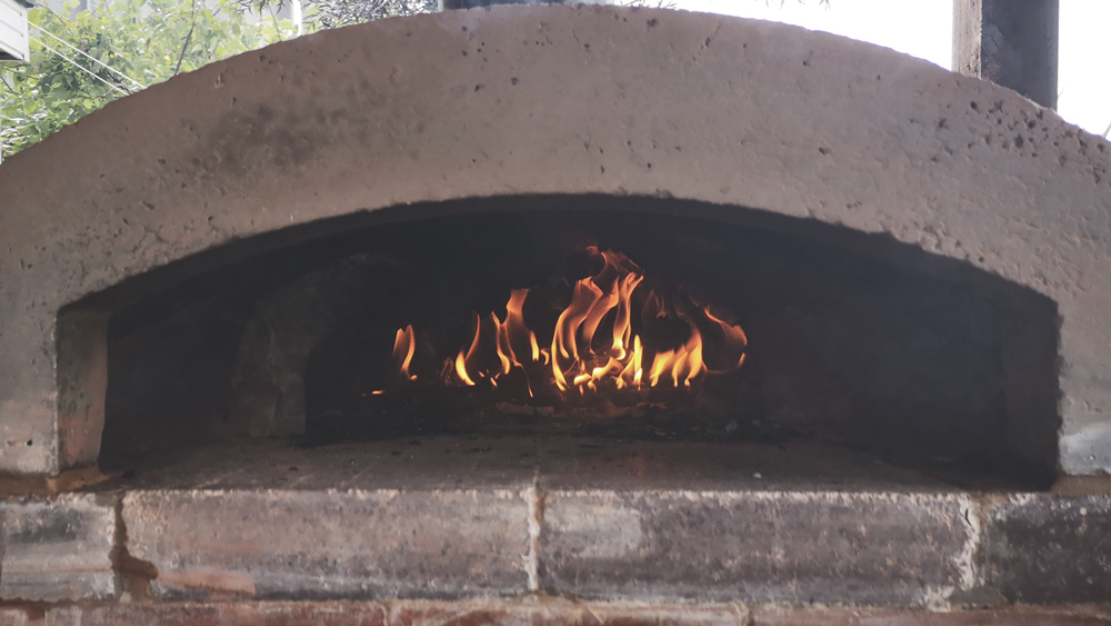 - A really good tip: when the pizza is about ready, lift it up on the shovel to the top of the oven and let the flames lick the top. This uses the shape of the oven – it’s a beautiful taste and finishes the pizza really well