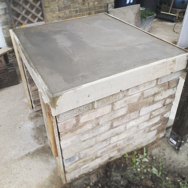 A good week into this I decided to remove the outer wooden form from the concrete slab. All set and extremely hard – I’m pretty pleased with the result.