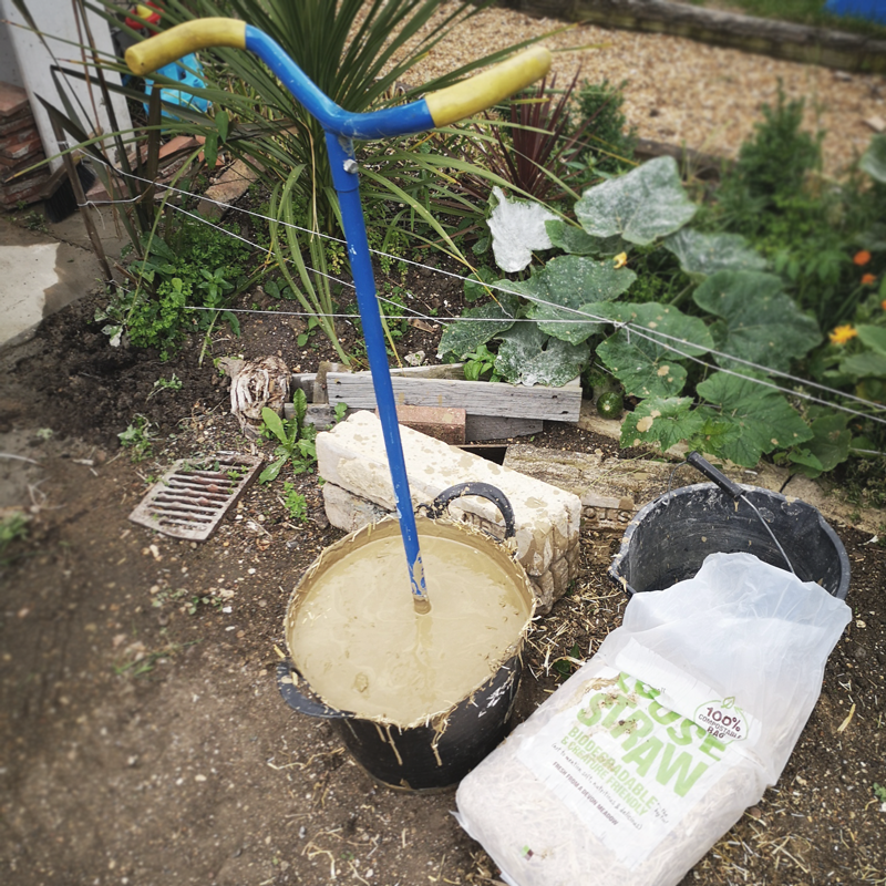 I then mixed this with tap water and another bucket of hay and mixed… this is HARD work! but eventually ended up with a sloppy mess consistent of cow muck (so way too runny) but my thinking was I would leave it to go off slightly over a few days – which it did… but it also smelt very similar to the aforementioned bovine!