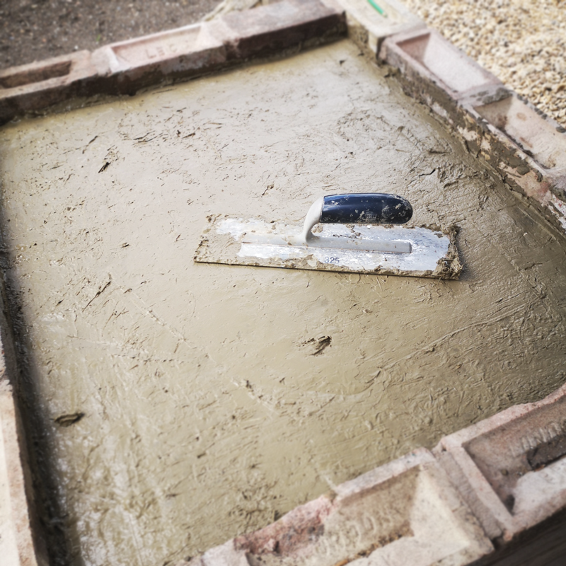 If you’re doing this first be sure to use a 1:6 concrete/ballast mix and level it up. Set it in fine weather and if it rains make sure you cover it. Water the concrete with tap water every day (this actually makes it more solid in the curing process) for about a week. It’s also worth pointing out that tap water should always be used for hardening mixing and hardening cement or concrete.