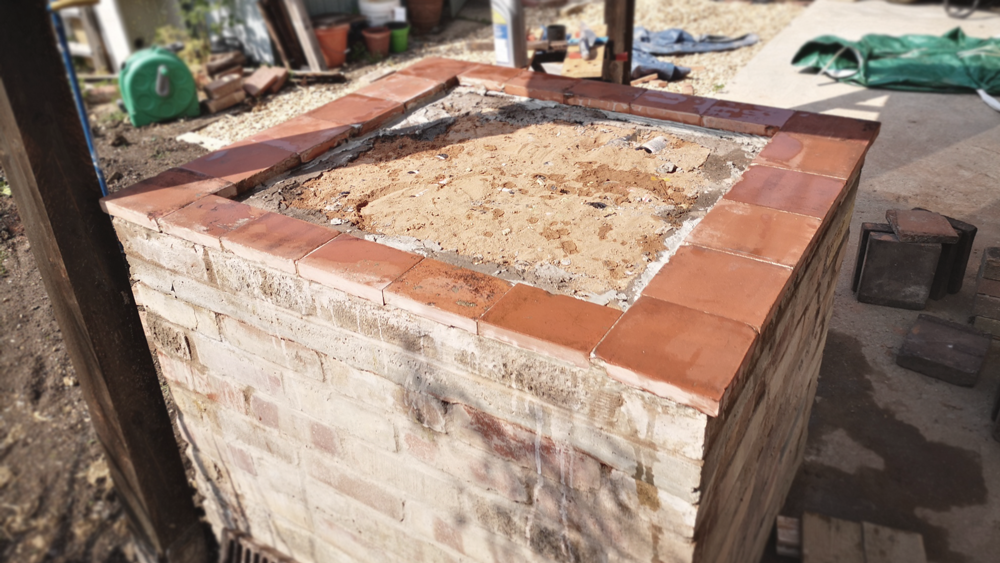 I had foraged a good 180 bricks from various different places over the years specifically for this project. The result is a shambolic mismatch but this is the look i’m going for – I want the oven to look rustic. The only issue I would say with doing this; is bricks vary in size, so if you go down this route make sure the outside edges are sharp, level each layer and be aware you may have uneven gaps in between bricks.