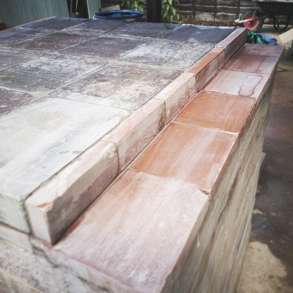 I then did a tile trim around the outside to cover the rough edges of the brick (again using scraps from the tiles) and did a skim over all the bricks and tiles using vitcas grout. The storage heater bricks I found were fairly rough so this skim really helps to set them and fill in the edges.