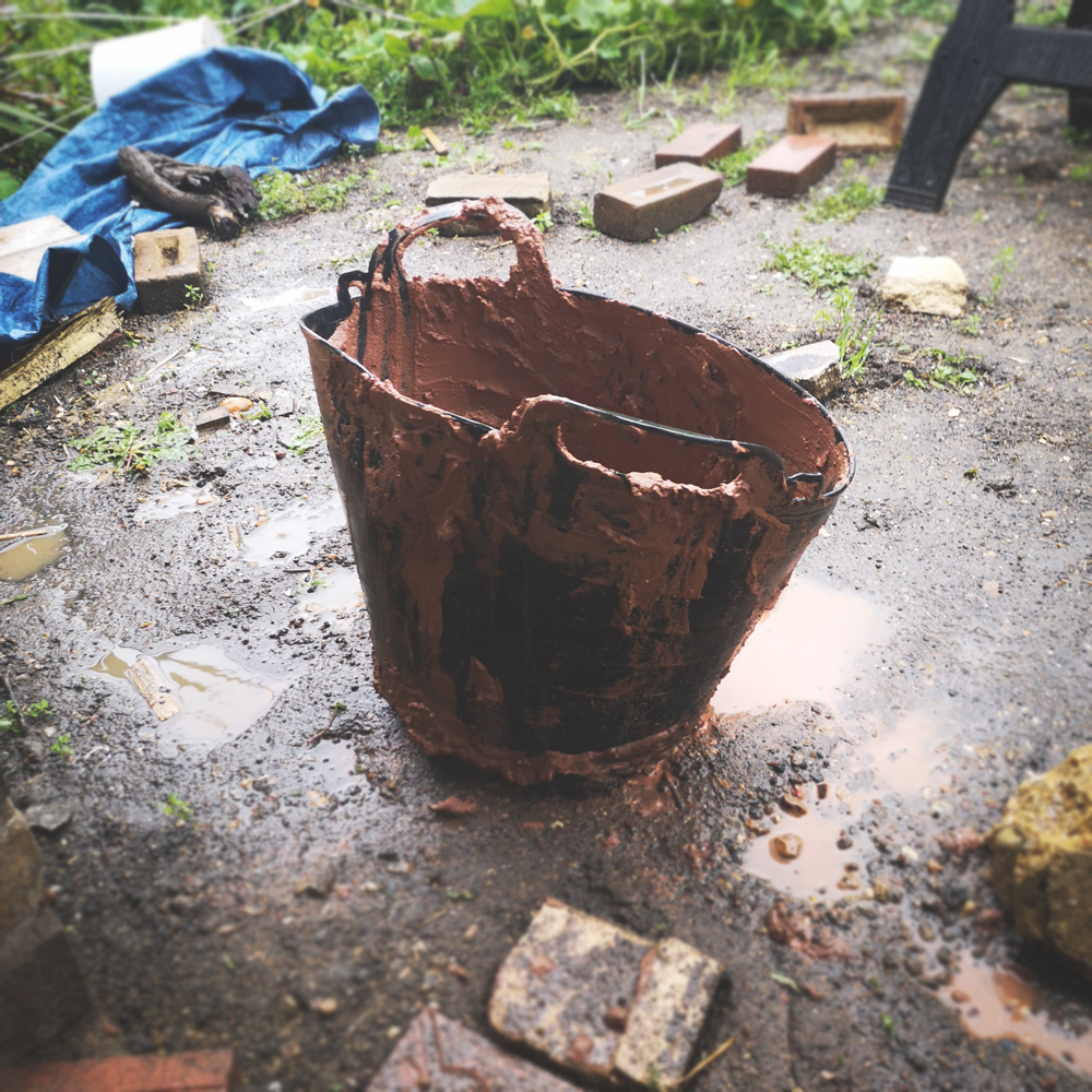 Whilst the bricks and mortar were setting I decided to get digging in the back garden for some clay. This was fun but be aware the neighbours may think that you’re digging graves! I had to dig about a meter down before I hit clay (also worth noting you may not even be in an area with clay) and I pulled a good large bucket full out.
