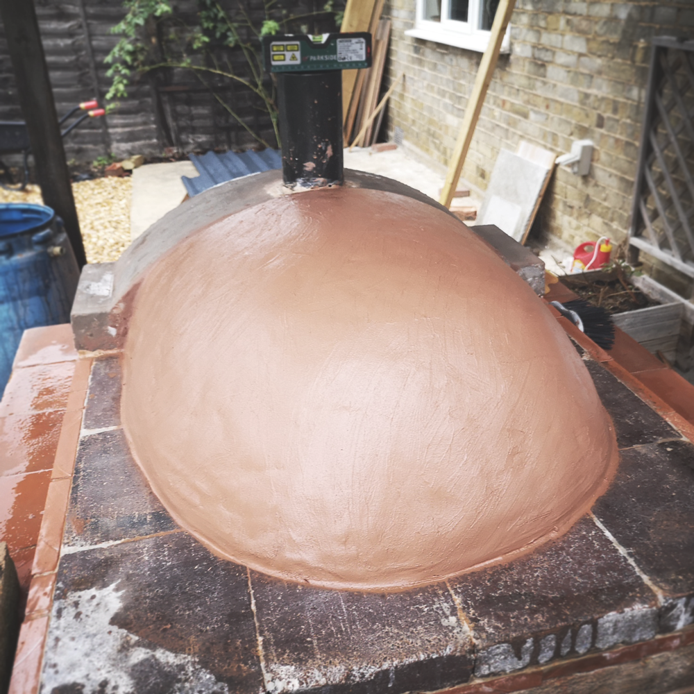 I’m really glad I went with instinct on this. Finish was perfect and actually I was able to shape the oven without damage or sag. It took a little longer to dry (maybe 4-5 days) but i’m fine with this and actually it was just the right wetness to add the next layer.