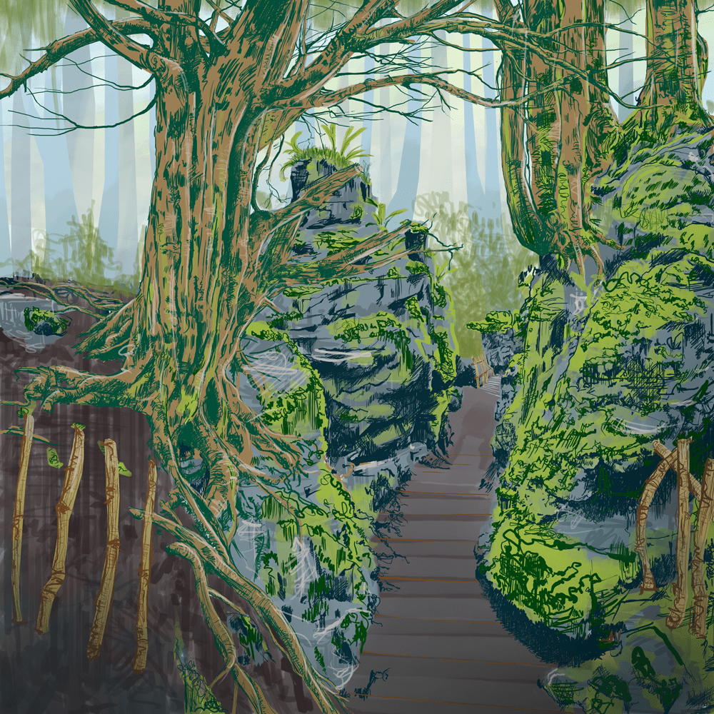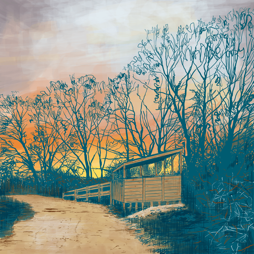 The illustrations below are digital images created in Adobe and Affinity software. The images are based on sketches, photographs and memory.